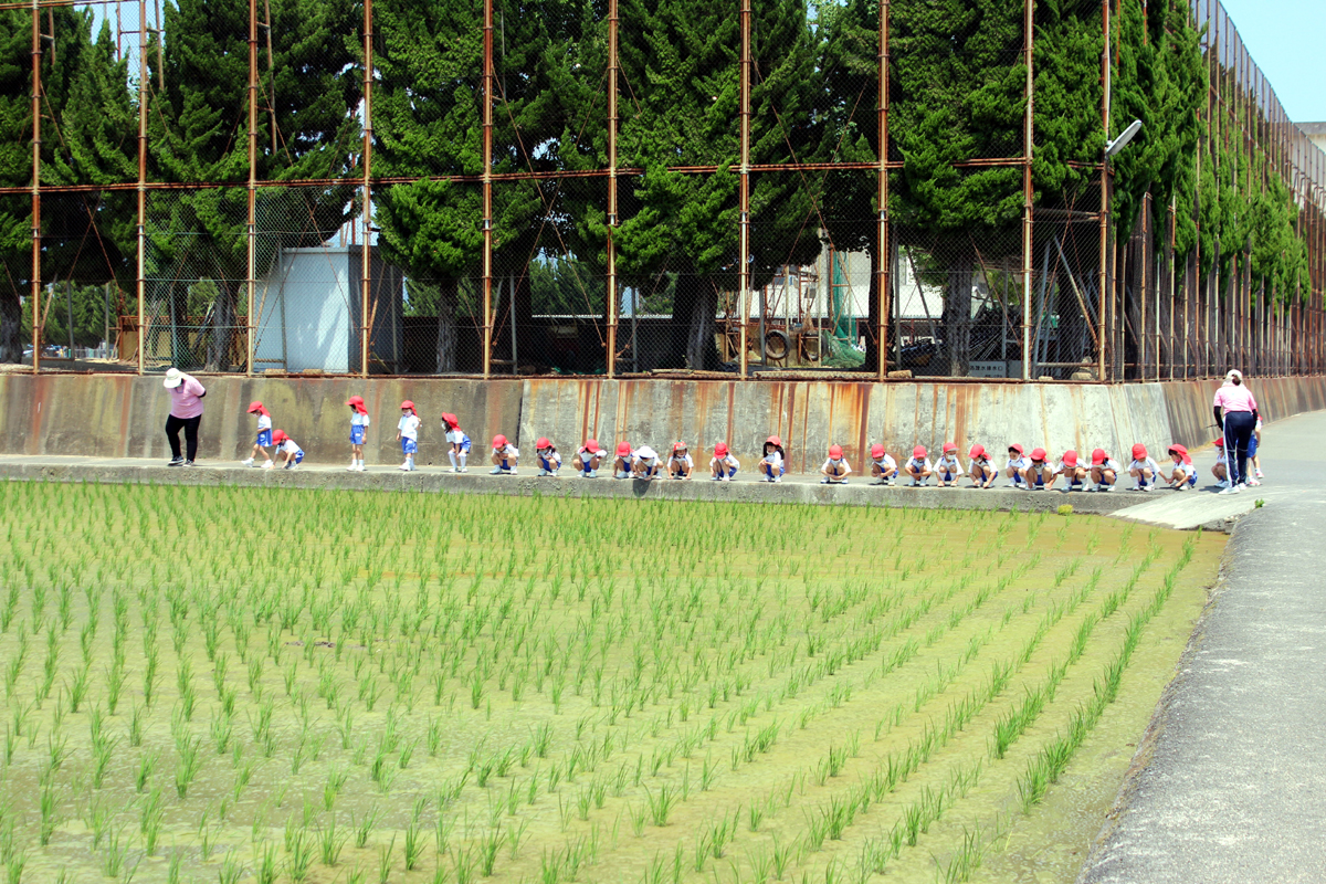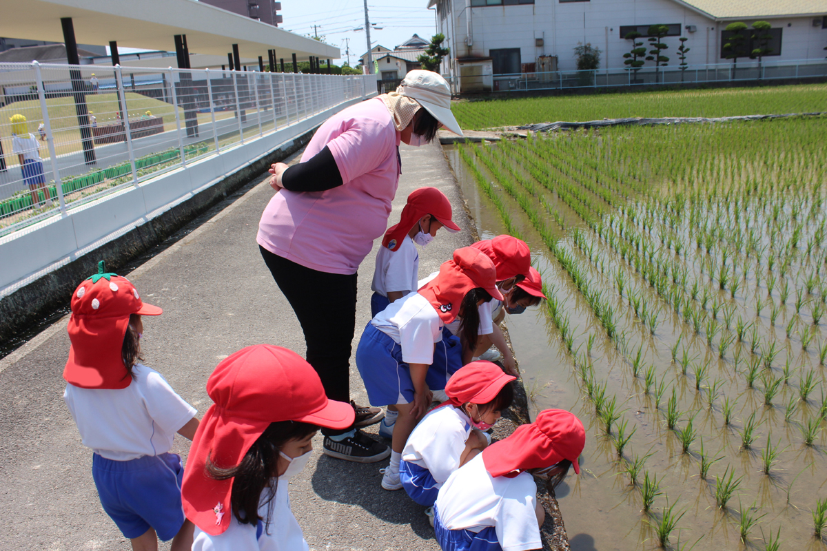 幼児たちが、興味をもっていそうっだったので、ばら組は田んぼを見に行きました。