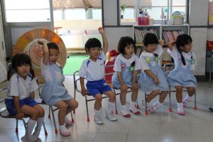 幼児たちは、「もじのワーク」と「かずのワーク」に取り組んでいます。