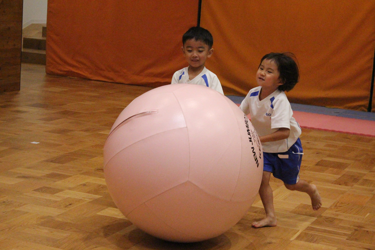 こすもす組は、大玉転がしの練習をしました。