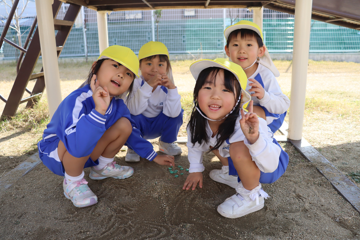 11月は、どんぐりを拾ったり、イチョウなどの落ち葉を拾ったりする幼児がいましたが