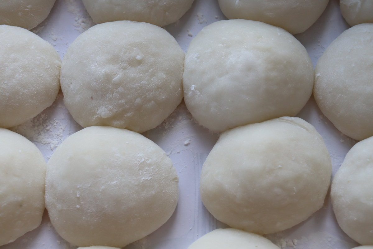 もちをついた後には、実際におもちに触れ、丸めていきました。