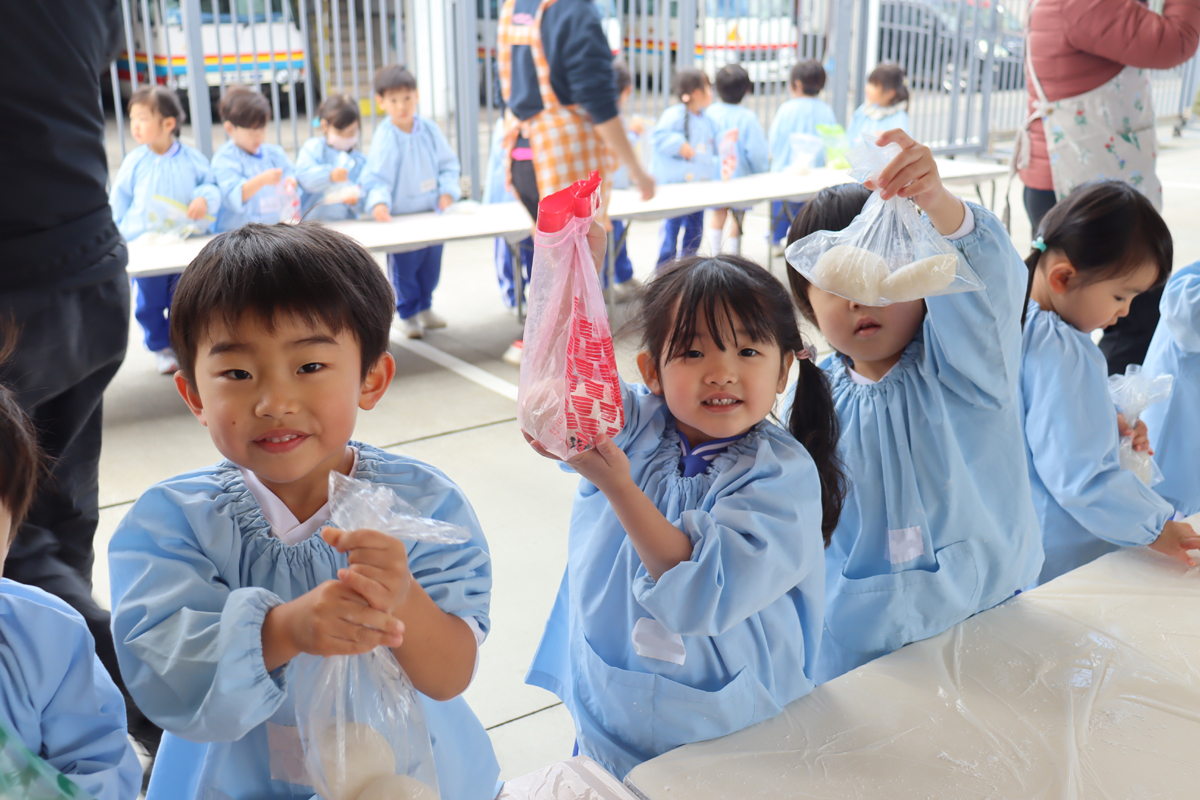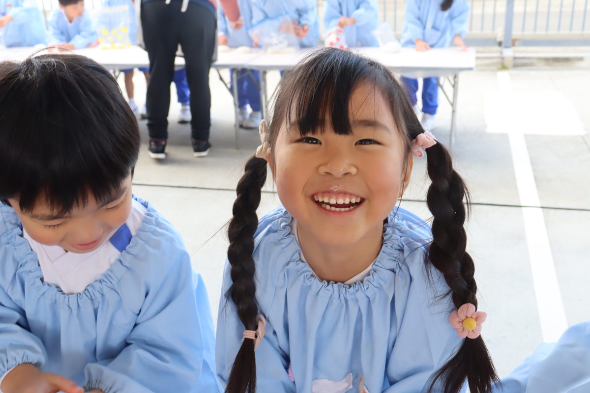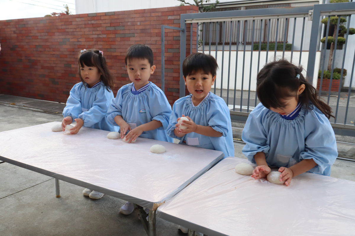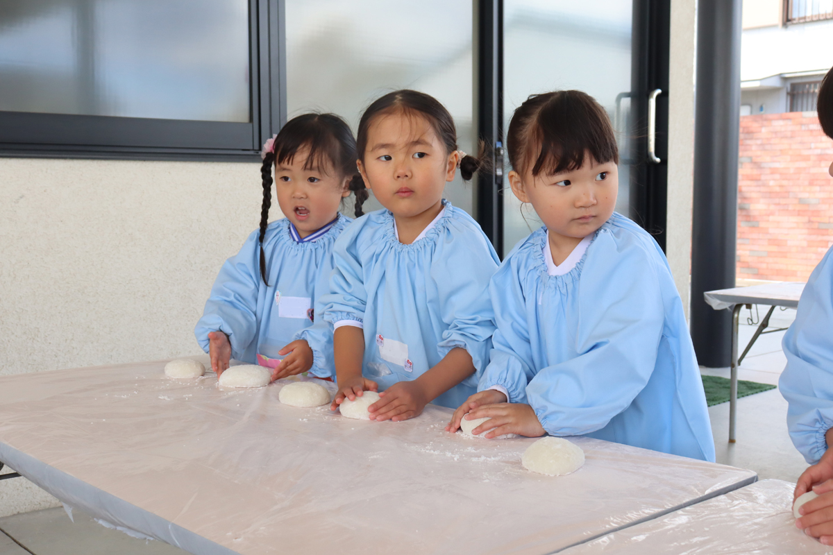 年少児やプレ年少の幼児の中には、はじめておもちに触れる幼児もいたようでした。