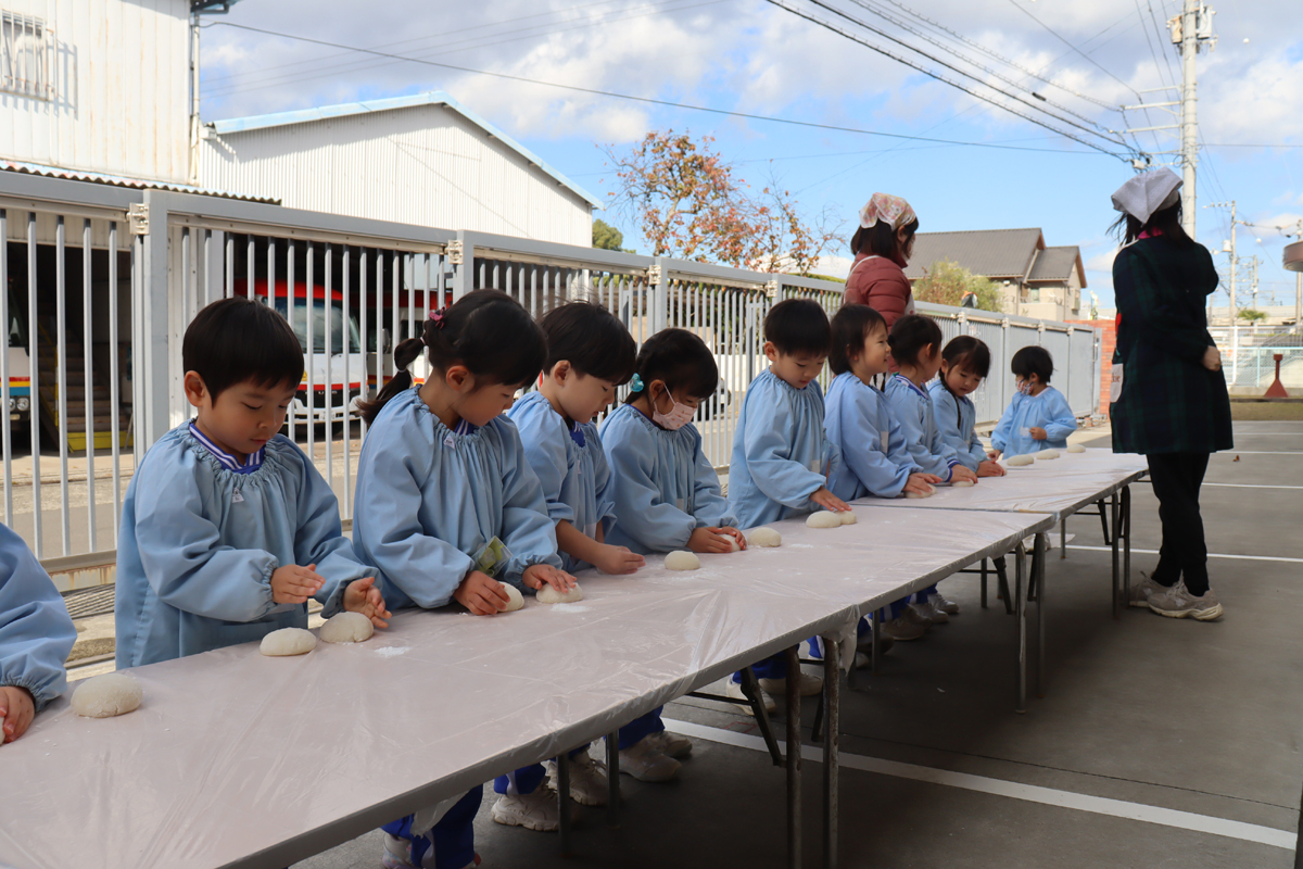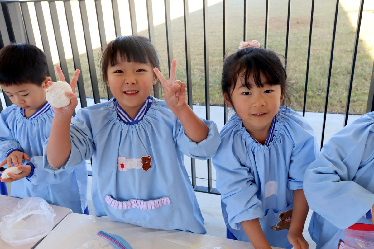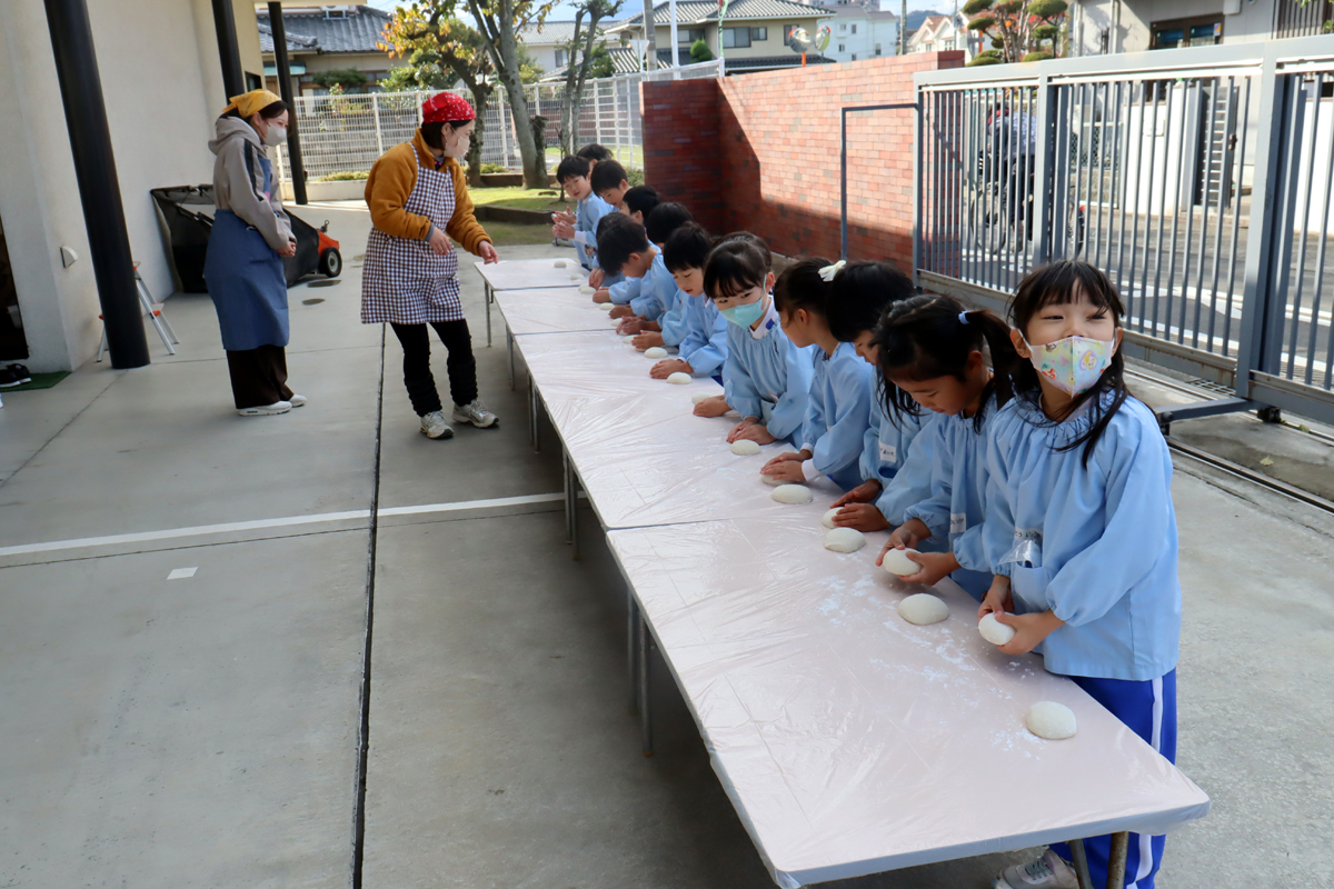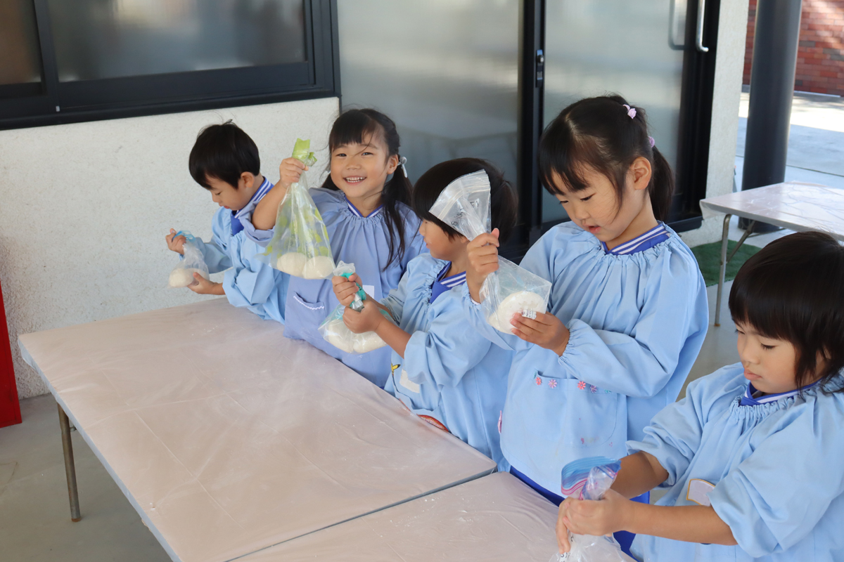 年少児やプレ年少の幼児の中には、はじめておもちに触れる幼児もいたようでした。