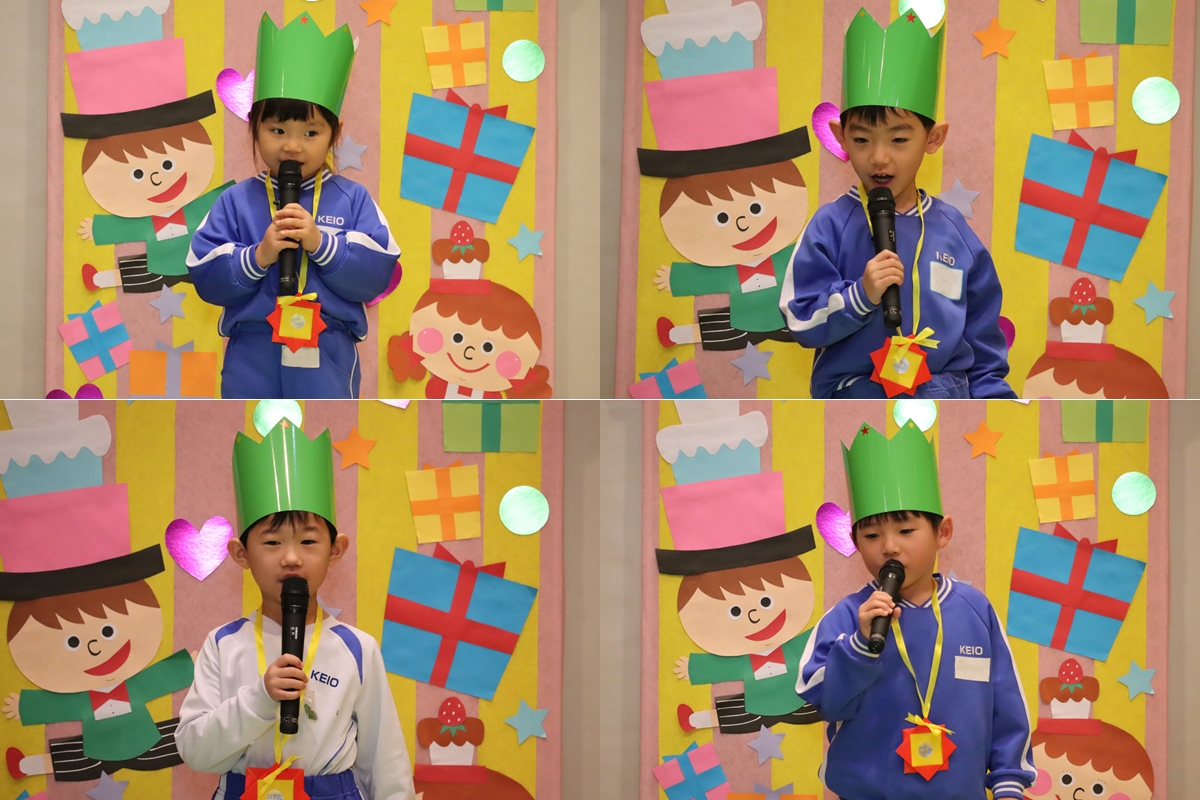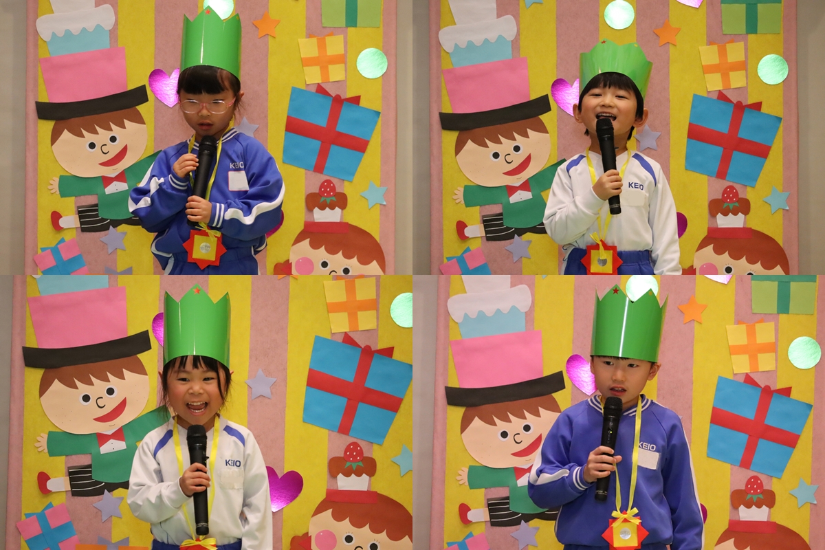 さて、誕生会では、幼児一人ひとりがみんなの前で発表する機会を設けています。