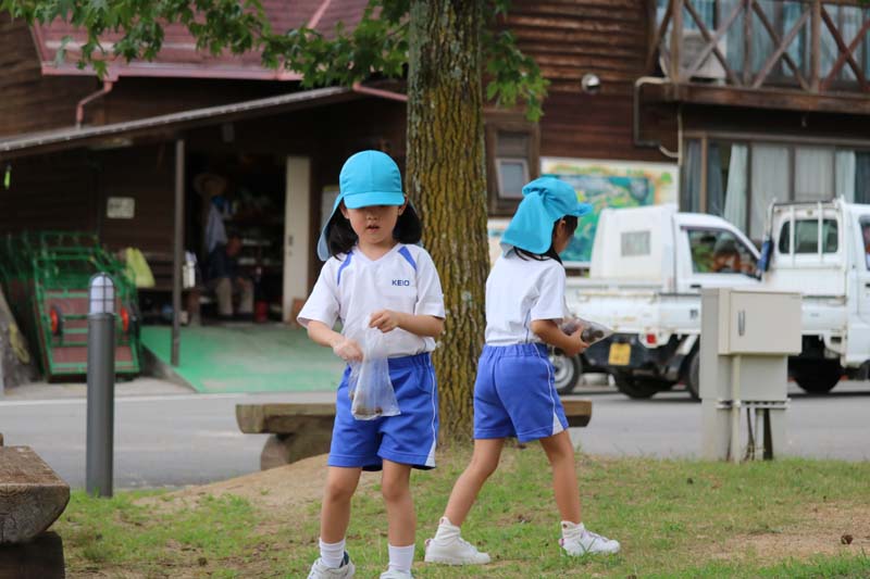 幼稚園に到着し、お泊り保育も終わりの時です。