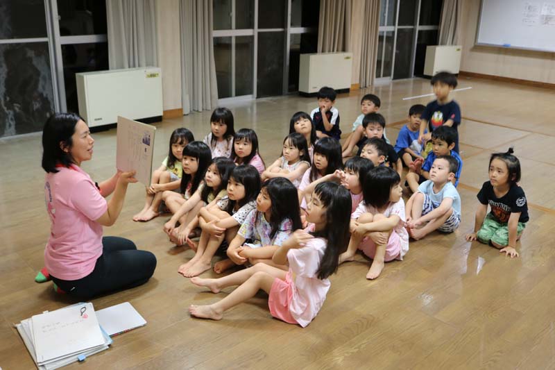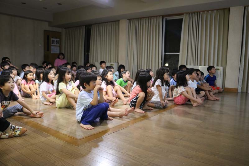 花火の後は、園者に戻り、絵本を読んで、就寝です。