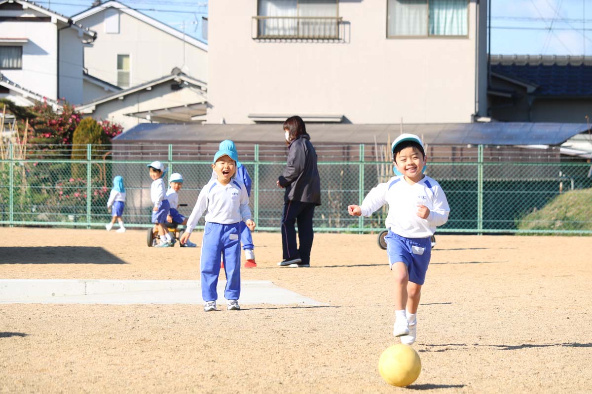 かけっこの後には、三輪車や遊具、サッカーやドッチボールなど
