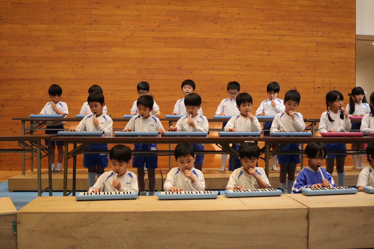 日頃から練習している、鍵盤ハーモニカと合唱を披露しました。