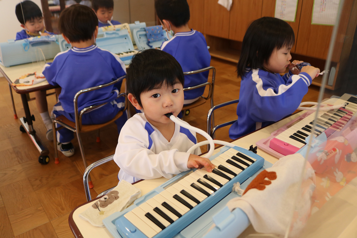たんぽぽ組の、鍵盤ハーモニカの練習の様子です。